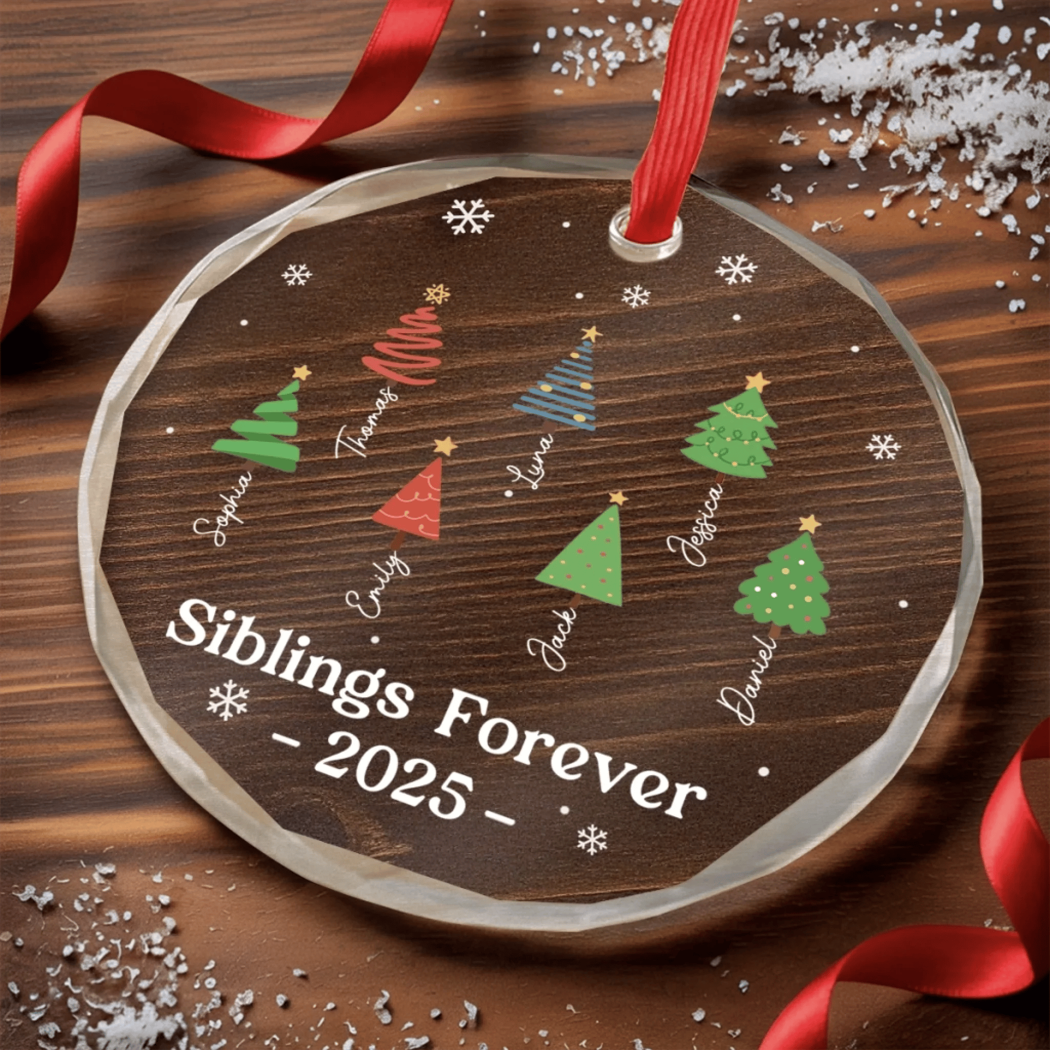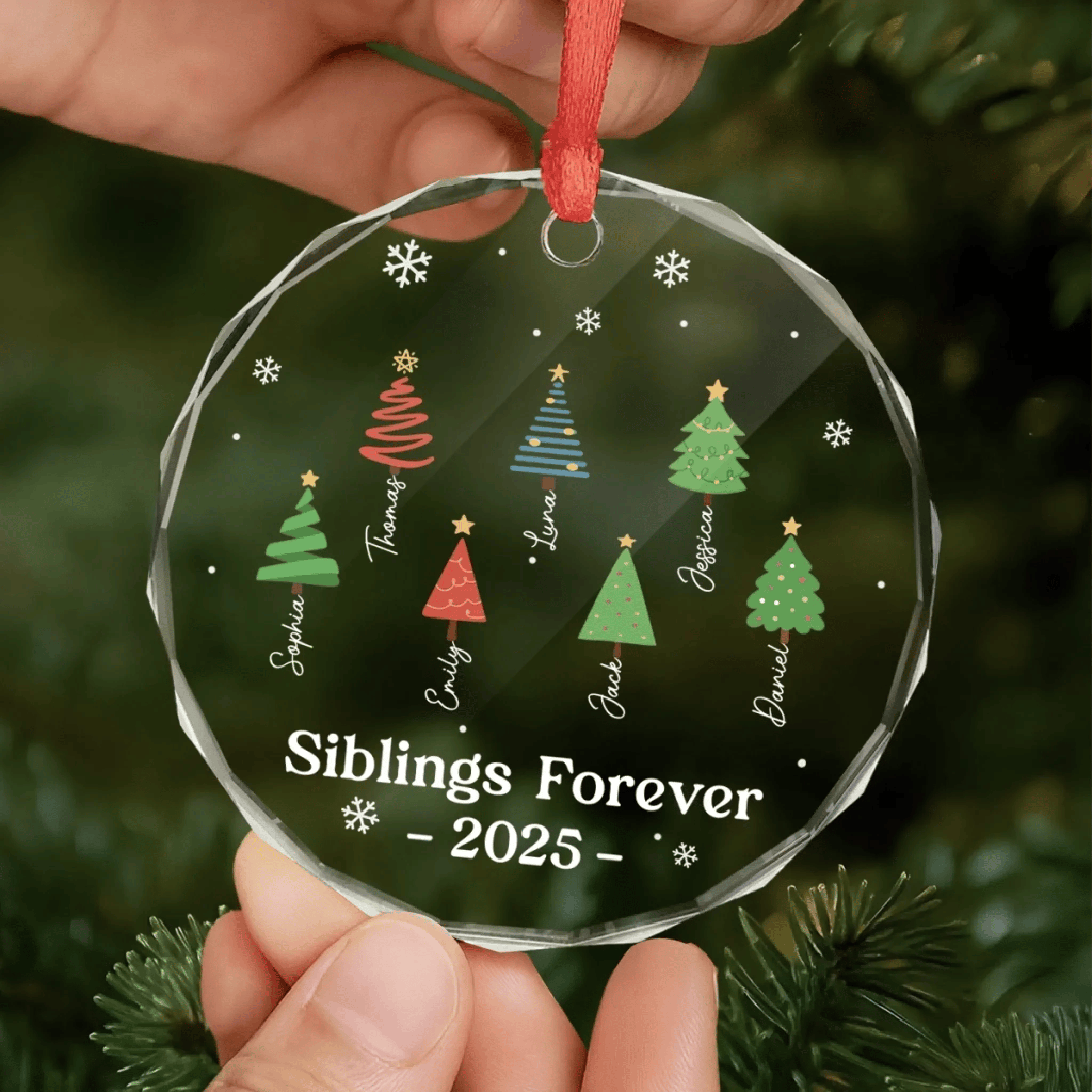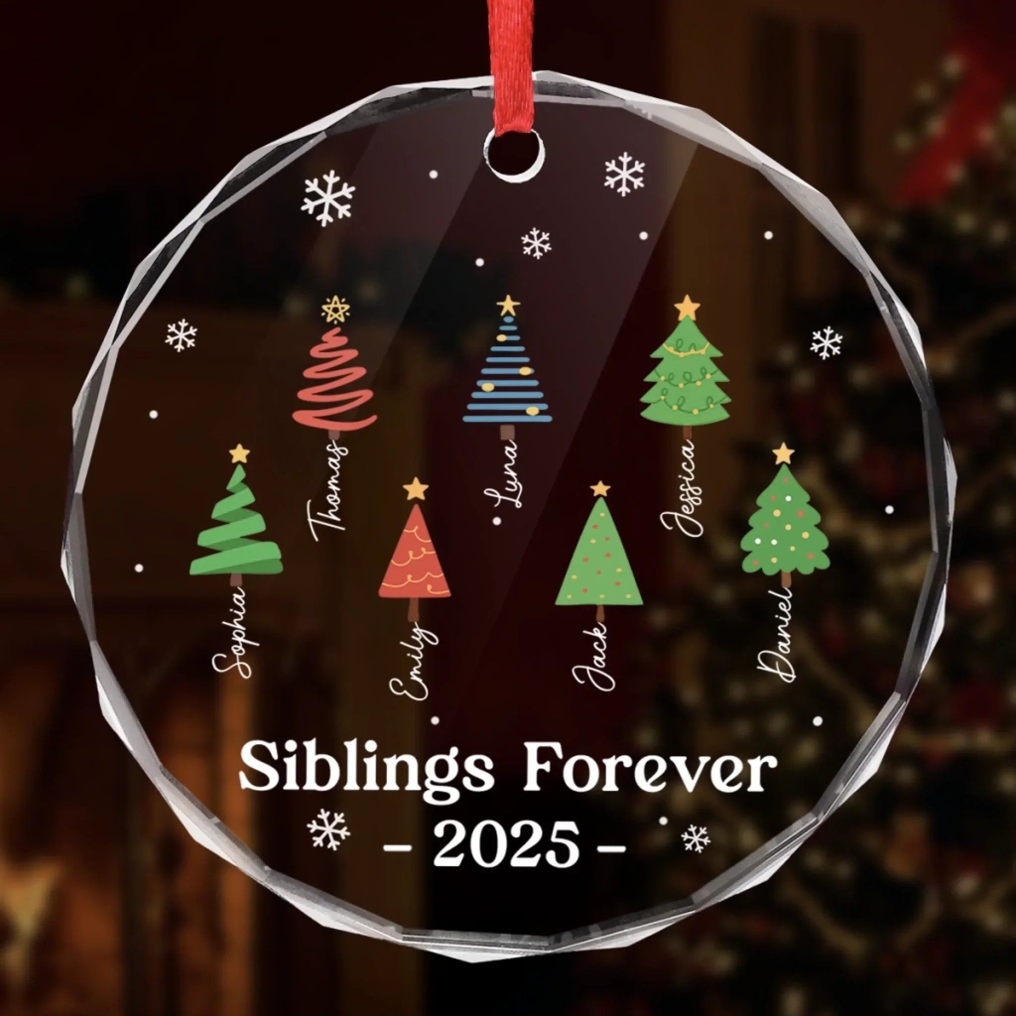 Individuell gestalteter runder Glasornament – ​​Personalisierte Weihnachts- und Geburtstagsgeschenke für Bruder und Schwester – Glück unterm Weihnachtsbaum