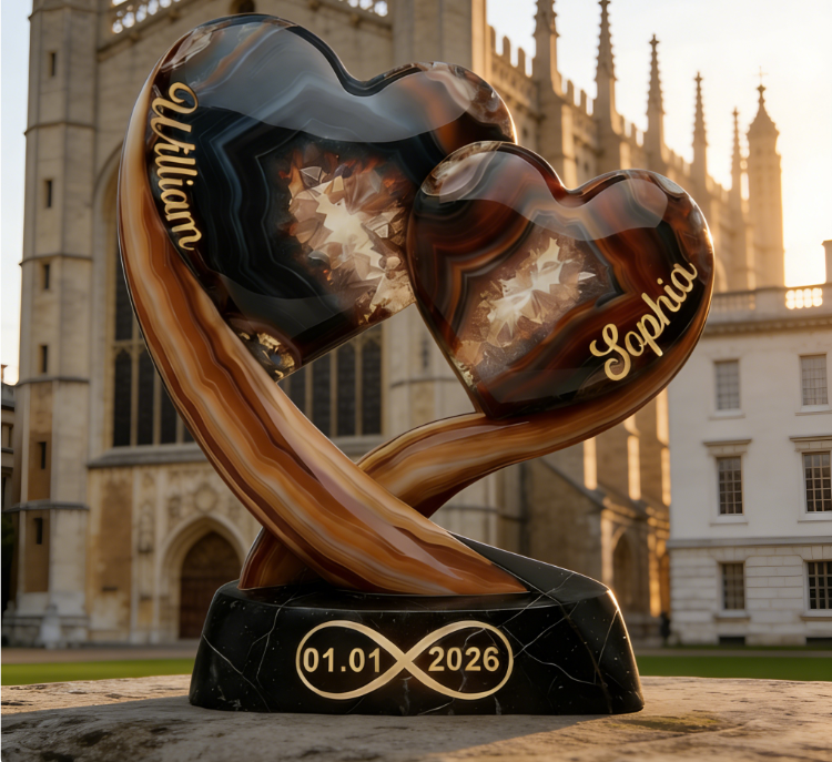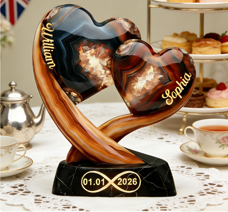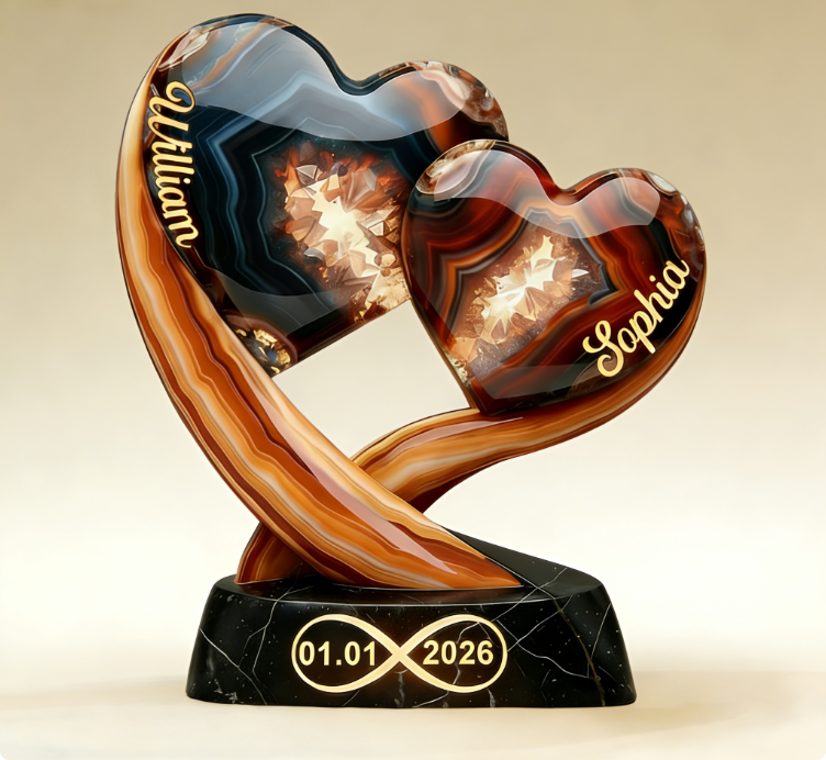 Personalisierte Pärchenplakette mit zwei Herzen, Namen und Datum – Valentinstagsgeschenk